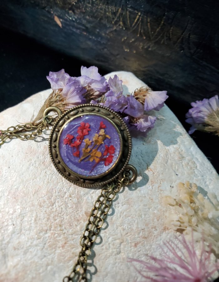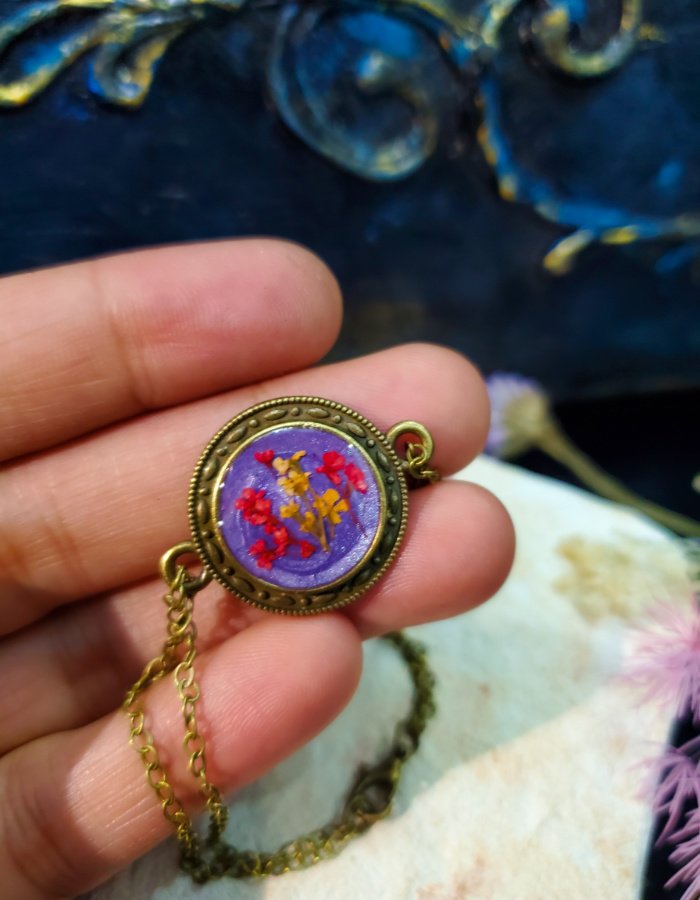 - Circular resin centerpiece with preserved blossoms — vibrant hues symbolizing nostalgia, joy, and renewal.