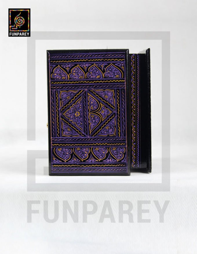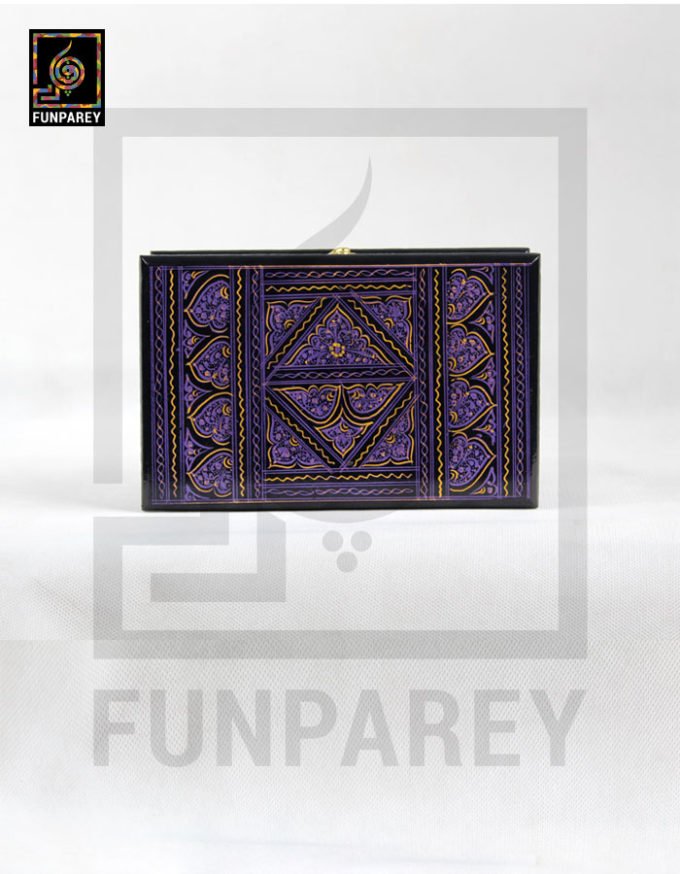 Wooden Jewelry Box Edged 8/5 with Nakshi Art Purple