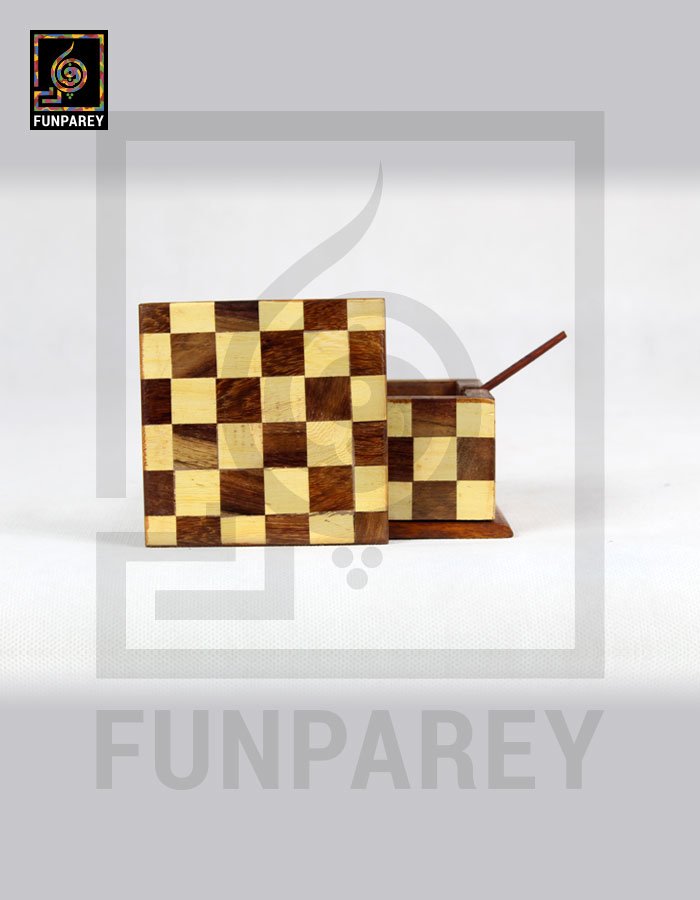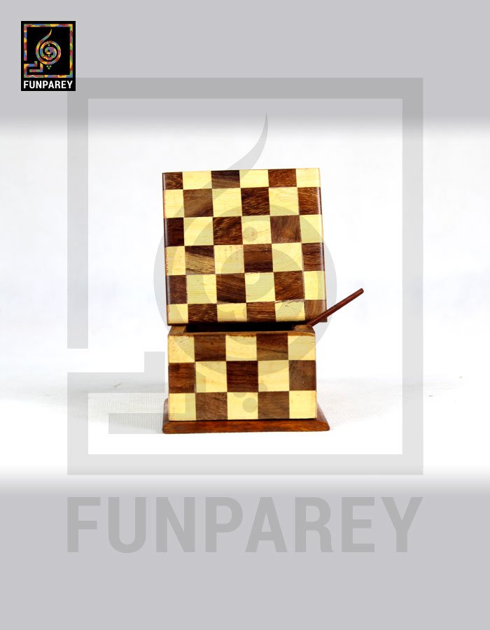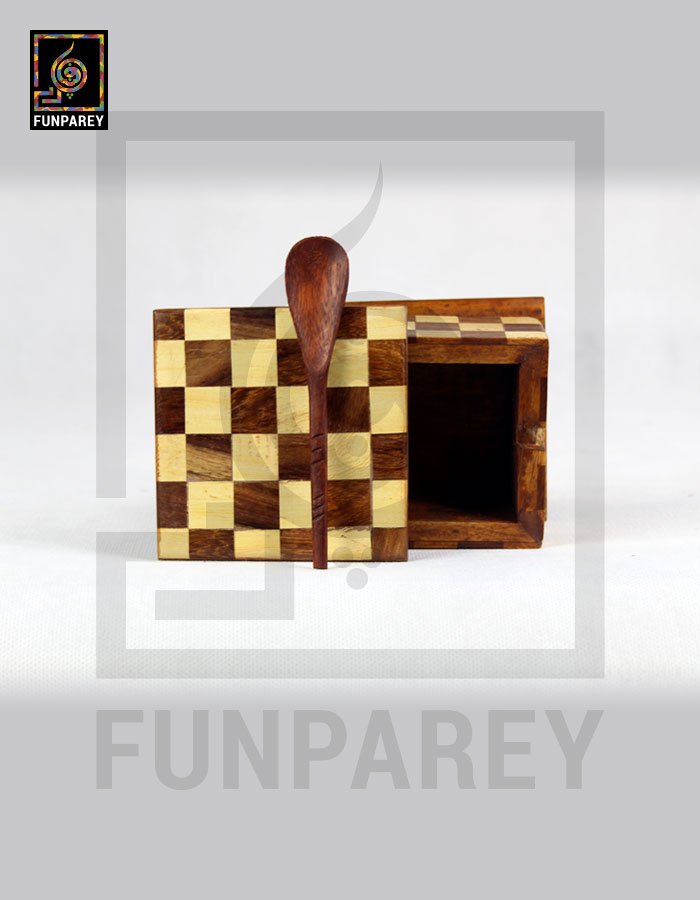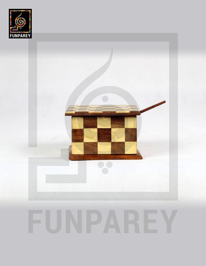 • Wooden Sugar pot with checkered art is made of solid wood.