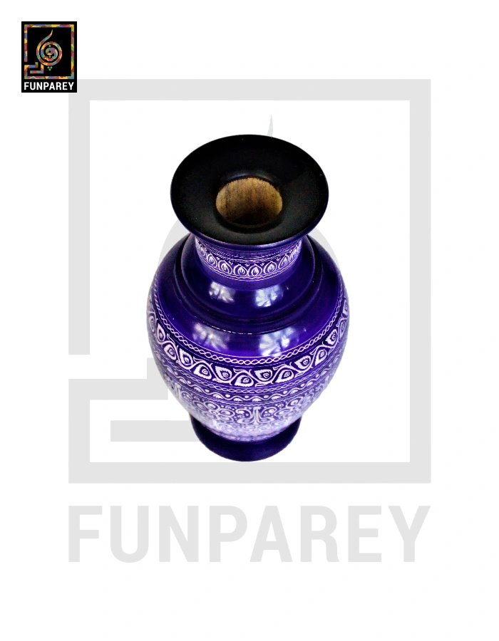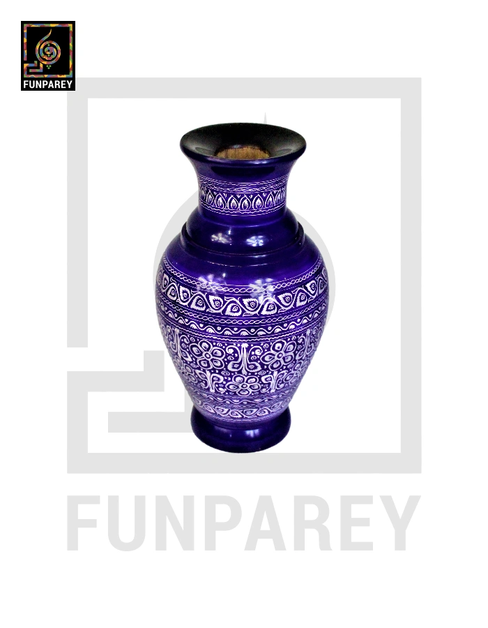 Wooden Vase 11″ with Nakshi Art Blue Pottery Dark