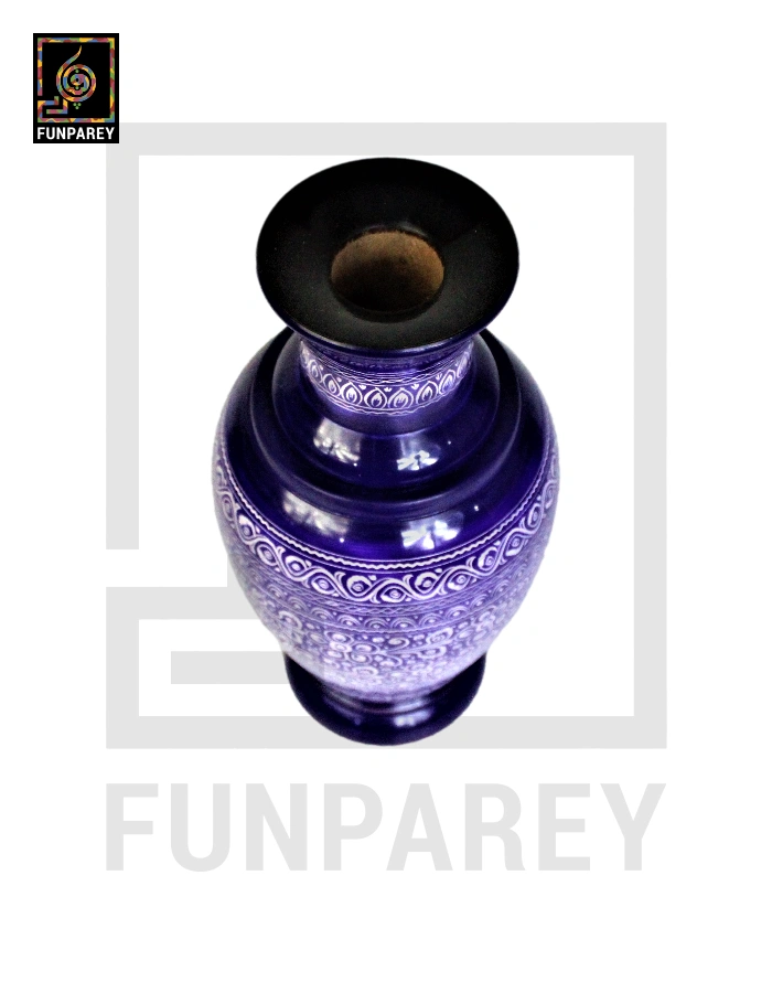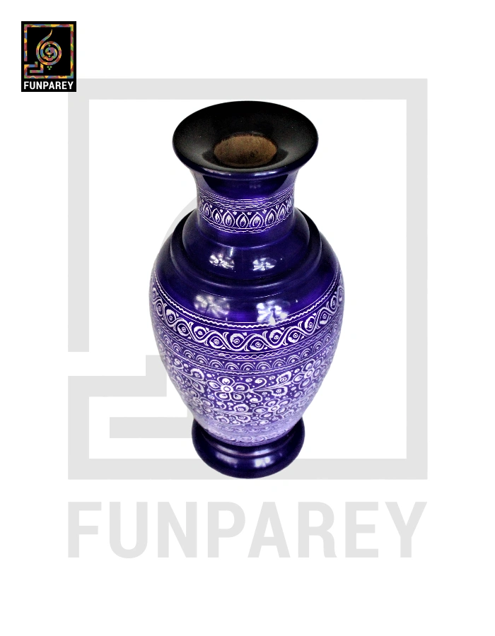Wooden Vase 12″ with Nakshi Art Blue Pottery Dark
