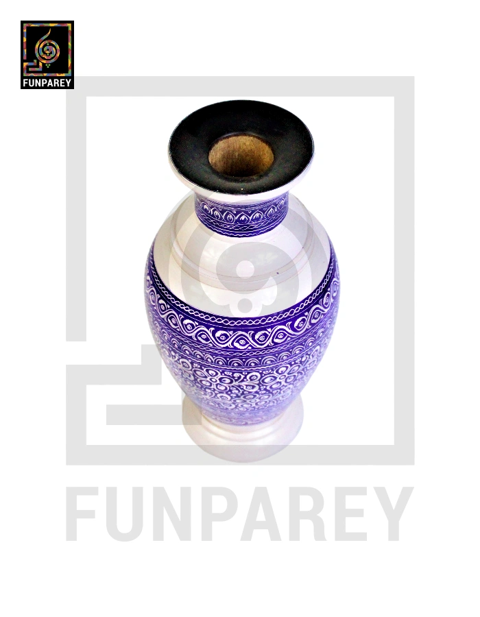 Wooden Vase 12″ with Nakshi Art Blue Pottery Light