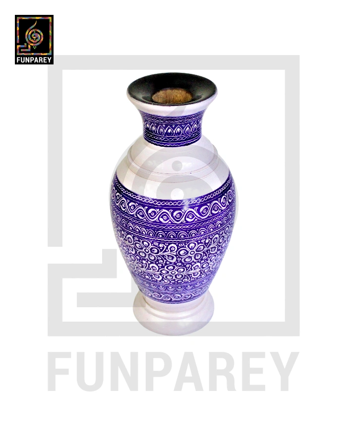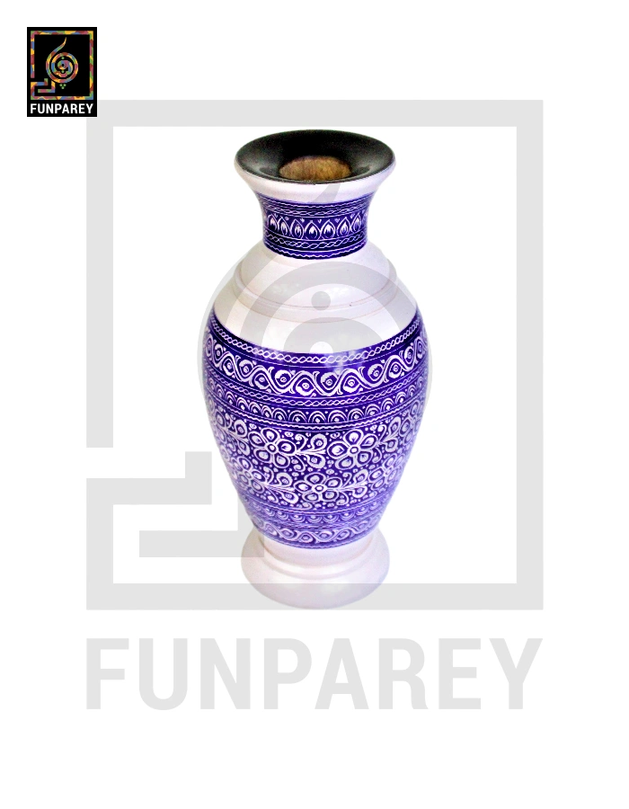 Wooden Vase 12" with Nakshi Art Blue Pottery Light