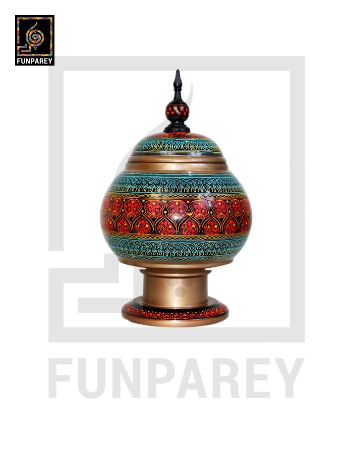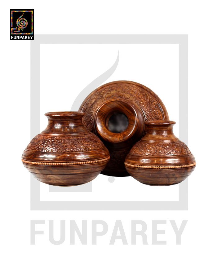 Wooden Flower Pot With Red Nakshi Art 9″ Golden